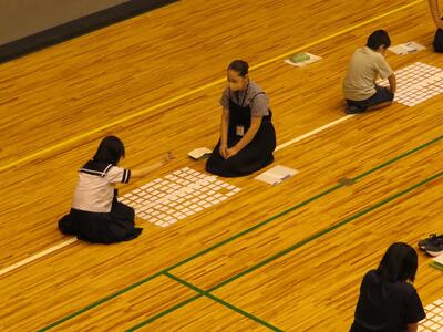 8月23日(火)に日向市文化交流センターで、第46回牧水かるた大会が行われました。日向中からは、団体戦に2年生の一山怜史さん、池北奈央さん、馬場麻友佳さん、嶋本胡樂さん、個人戦に2年生の嶋本胡樂さん、1年生の佐藤真椰さん、飯干愛姫さんが出場しました。
