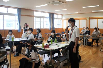 太平洋戦争中に、浦添市の皆さんが日向市に疎開したことが縁で、両市の交流が続いています。日向中学校には昨年12月に続いての来校となります。