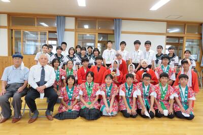 さて、8月18日(金)の浦添市中学生平和交流団の皆さんの前で、ひょっとこ踊りを舞ったのは日向中の1年生です。