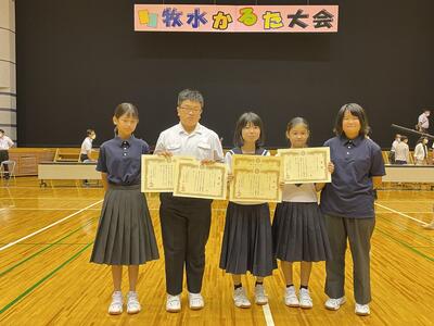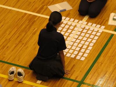8月23日(火)に日向市文化交流センターで、第46回牧水かるた大会が行われました。日向中からは、団体戦に2年生の一山怜史さん、池北奈央さん、馬場麻友佳さん、嶋本胡樂さん、個人戦に2年生の嶋本胡樂さん、1年生の佐藤真椰さん、飯干愛姫さんが出場しました。