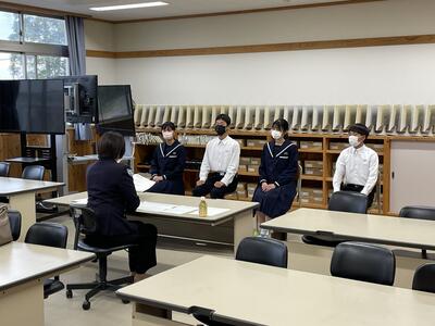 11月17日(木)日向市キャリア教育支援センターのサポートを受けまして、3年生に対し「第1回 よのなか先生模擬面接」を行いました。日向精錬所 平野美恵 様、自衛隊日向地域事務所 河野智美 様、マルイチ 高木資子 様、是澤印刷 是澤利保 様、FM日向 山本恵子 様、お忙しい中、面接のご指導をいただきまして感謝申し上げます。子どもたちは緊張しておりましたが貴重な経験になりました。これから12月7日まで、計5回行う予定です。よのなか先生、どうぞよろしくお願いいたします。