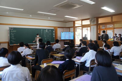 11月21日(月)はその研究の一端を見ていただくための授業公開が行われました。100名近くの方にお越しいただき、1年国語・音楽、2年数学、3年理科の授業を行いました。