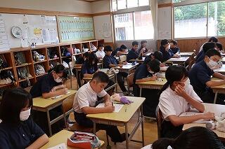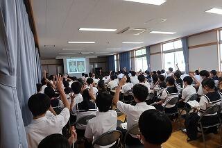 6時間目の授業は、1年生はそれぞれの学級で活動していました。2年生は10月5日(木)に行う「社会体験(14歳のよのなか挑戦)報告会」に向けた準備、3年生は塩見小学校の栄養教諭の先生による「食育」の授業でした。