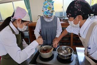 1年生の家庭科の授業では調理実習を行っています。今回の調理は「牛丼」です。醤油や砂糖で味付けをして、とてもおいしい牛丼ができたようです。