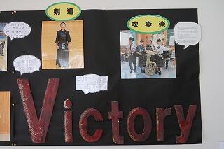 日向中からは、陸上、軟式野球、ソフトテニス(女子)、ソフトボール(女子)、バスケットボール、卓球、バドミントン、剣道 に出場します。大会に出場する3年生を応援するメッセージが下足等に掲示してあります。