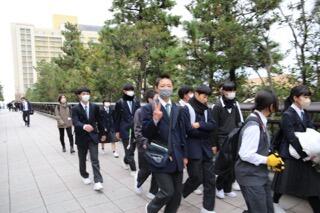 バスは高速道路を走り、楽しみにしているUSJに到着しました。途中には甲子園球場も見えました。
