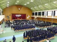 式では、代表生徒が「今年度を振り返って」の作文を発表し、この1年間の成長や今後への決意を堂々と述べました。その後、各学年の代表生徒に修了証が授与され、校長先生より高校入試制度の変更のことや新年度に向けたお話がありました。
