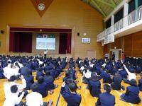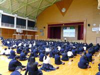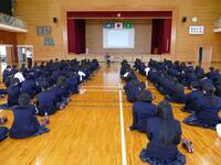これまで、寒さや暑さの対応などからオンラインで行うことが多かった集会ですが、今回は対面での実施となりました。1・2年生は、落ち着いた態度でしっかりと話を聞く姿が見られ、大変立派でした。