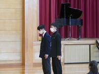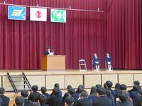 続いて行われた全校集会では、善行児童生徒学校賞の表彰および部活動の校納、春休みの生活について先生方よりお話がありました。
