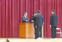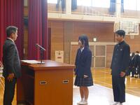 式では、代表生徒が「今年度を振り返って」の作文を発表し、この1年間の成長や今後への決意を堂々と述べました。その後、各学年の代表生徒に修了証が授与され、校長先生より高校入試制度の変更のことや新年度に向けたお話がありました。