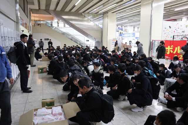 学級発表と学級担任・副担任の発表が各学年体育館と武道館に分かれて行われました。新しいクラスに移動してからは、新しい教科書が配布されました。