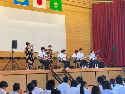 素晴らしい演奏はもちろんのこと、三味線の歴史や種類など学びもあり、生徒たちにとって良い機会になったと思います。