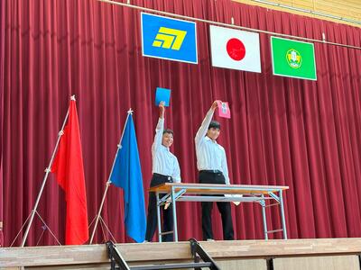 体育館の壁には、各クラスで作成した横断幕を飾りました。どのクラスも想いのこもった素敵なものが出来上がっていました。ぜひ、ご覧ください☺