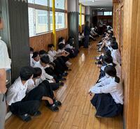 騒がしい、落ち着かない環境の中、頑張っている生徒もいます。