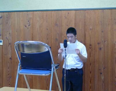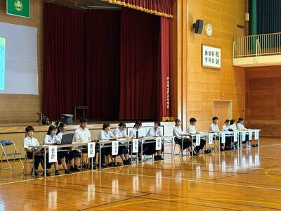 旧役員の生徒が退任のあいさつをし、その後、新役員の紹介がありました。