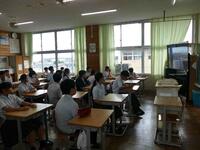 講師に、宮崎日本大学高等学校の門脇明博先生に来ていただきました。高校入試も意識し、面接の入退室や身だしなみなどについてお話しがありました。面接は節目節目であり、その時にベストが出せるように日頃の生活から見直していくことが大切であると話がありました。生徒は、面接のポイントをしっかりとメモをして聞いていました。礼法指導教室で学んだことを、職場体験学習で実践してほしいです。