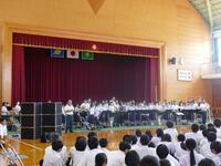 今年度は、宮崎県警察 音楽隊の方々が生徒たちに馴染みのある曲を演奏してくださいました。途中、指揮者体験を生徒 2 名がさせていただきました。生徒にとって思い出に残る良い経験になったことと思います。