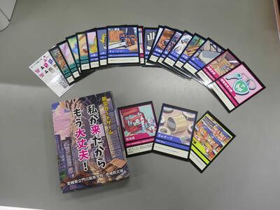 この防災カードゲームは、門川高校の生徒がAIを使ってデザインしており、誰でも簡単に楽しく防災学習をすることができます。東京で発表をした時には、1位を獲得したそうです!!また、門川町が防災カードゲームを故郷納税の返礼品として取り扱うそうです。