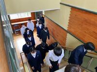 今回は地震・津波を想定した避難訓練として、各校舎の3階に避難しました。