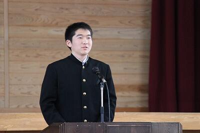 表彰を受ける様子とお礼の言葉を述べる前生徒会長