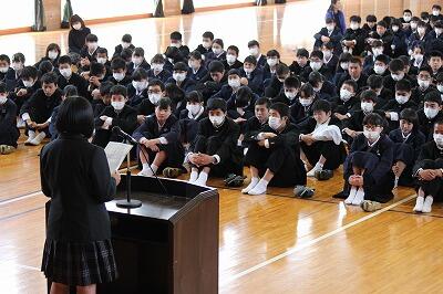 また、全校集会もあり、生徒指導面と保健指導面から話がありました。