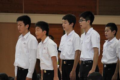 終業式を行い、代表生徒4人の作文発表がありました。4人とも内容がすばらしく、昨年の1学期から、レベルアップを感じます。体育大会や秋桜祭を経て、「学級がまとまった。」とか「一人一人の自覚が高まり、授業に対する態度がよくなった。」とか、「積極的に何事も取り組めるようになった。」等、成長したことがたくさんあったということでした。生徒会長から「明るく楽しい学校生活にしたい。」、「規則を守りたい。」「社会に貢献できるようがんばりたい。」と発表があり、全校生徒の意識を啓発していました。その他、多数の表彰もありました。文化面での活躍もあり、ますます文武両道の門川中となっています。