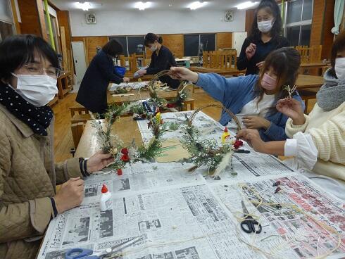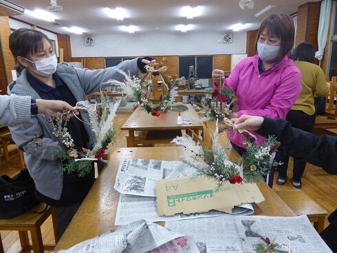 今回は日向市で花店を経営され、昨年度まで本校PTA副会長を務められた青柳心子氏を講師に、プリザードフラワーを使ったリース作りに取り組みました。約2時間の内容でしたが、皆さん製作に大変集中され、最後には全員、立派なリースを完成することができました。
