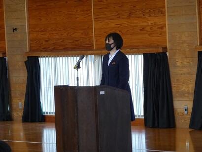 その後、新生徒会が登壇、一ノ瀬新会長が力強く挨拶しました。