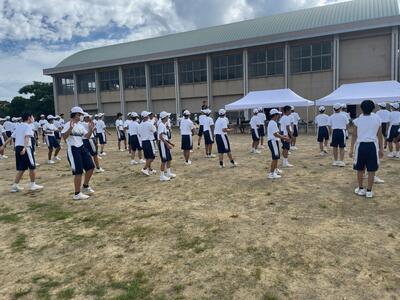 台風の影響が心配されましたが、無事快晴の中全校体育を実施することができました。