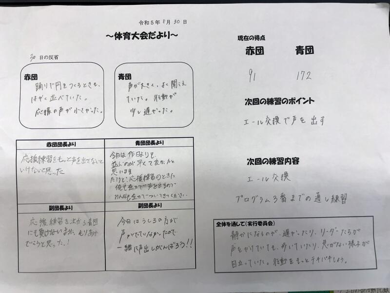 <↑生徒が書いている体育大会だよりです!忘れ物が多くて残念ながらマイナス点ですがここから頑張ります!>