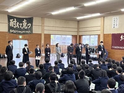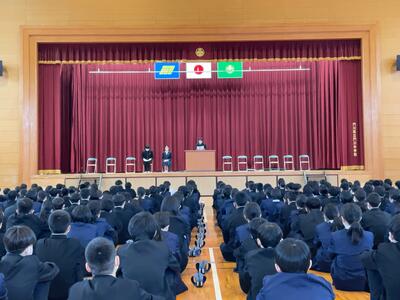 校長先生のお話ではWBC、春の高校選抜の話から始まり、「努力の1年」にしてほしいというお話がありました。生徒も集中して話しを聞いていました。