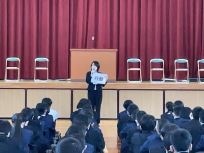 新学期の抱負では新2年生の小野さん、新3年生の堀谷さん、生徒会代表の松崎さんの3名が抱負を述べてくれました。