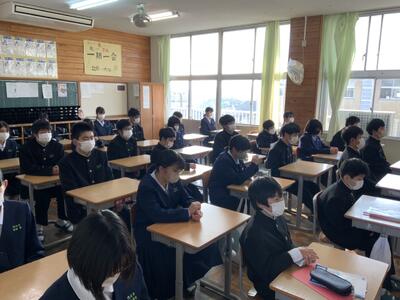 3学期がスタートしました。入試前となり、緊張した雰囲気で集会が行われました。全員で合格できるように、3学年一同、一致団結して努力していきたいと思います。