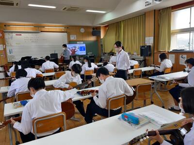 朝の会や昼休みなどは第3学年の担当として過ごしました。学級では自分が中学生の時に感じたこと、思い出を生徒に語ってもらいました。生徒も興味をもって聞き入っていました。また、専門の音楽の授業を実践し道徳の授業の参観などを行いました。