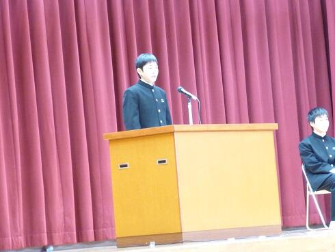 始業式では、各学年、生徒会の代表による抱負が述べられ、校長先生からは、「新たな時代に向け、夢と希望を持ち続けること。」という話がありました。