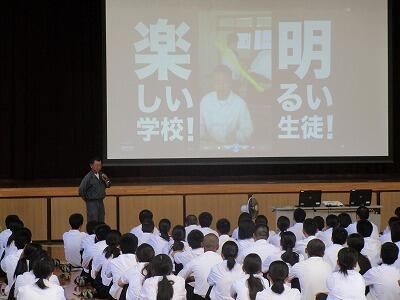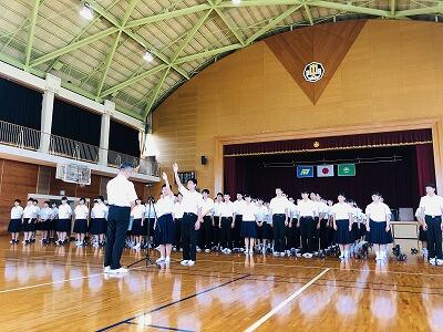 清掃の後、体育館で集会を開き、九州大会に参観する部活動の壮行会を始め、