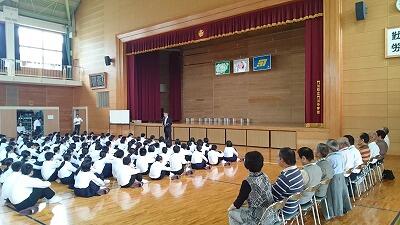 5月22日(月曜日)放課後、かどがわスクールサポーターズ(KSS)の方々と1年生(133名)が体育館で顔合わせを行いました。