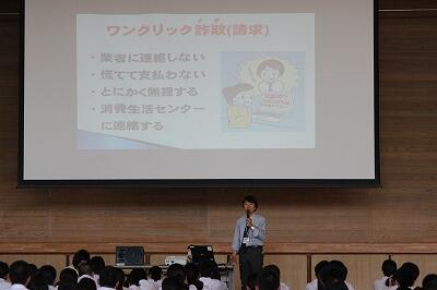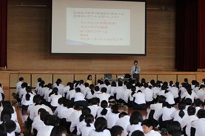 本日6校時、宮崎県消費生活センタ-延岡支所から講師をお招きし、情報モラル教室を実施しました。