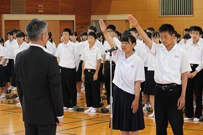 6月10・11日(土・日)に行われる地区中学校総合体育大会に向け、本日、選手推戴式がありました。