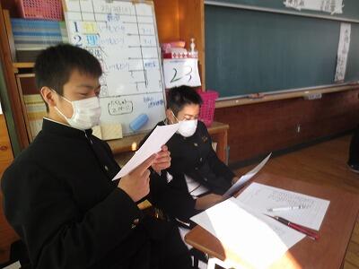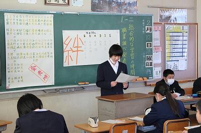 この日は、1年生が職業調べの発表、2年生が決意発表、3年生が弁論と一人一人が発表する場でした。みんな堂々と発表していたのではないでしょうか。