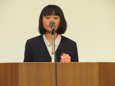 終業式を行い、代表生徒4人の作文発表がありました。4人とも内容がすばらしく、昨年の1学期から、レベルアップを感じます。体育大会や秋桜祭を経て、「学級がまとまった。」とか「一人一人の自覚が高まり、授業に対する態度がよくなった。」とか、「積極的に何事も取り組めるようになった。」等、成長したことがたくさんあったということでした。生徒会長から「明るく楽しい学校生活にしたい。」、「規則を守りたい。」「社会に貢献できるようがんばりたい。」と発表があり、全校生徒の意識を啓発していました。その他、多数の表彰もありました。文化面での活躍もあり、ますます文武両道の門川中となっています。