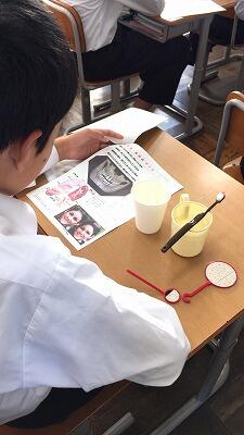 11月1日(火)5、6校時に1年生はブラッシング指導(歯磨き指導)を町民課の協力を得て実施しました。保健師さん、歯科衛生士さんが指導していただいたので、生徒は大変具体的に学ぶことができました。