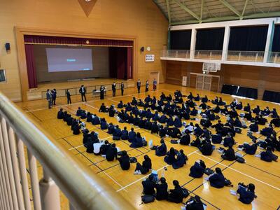 校長先生のお話ではWBC、春の高校選抜の話から始まり、「努力の1年」にしてほしいというお話がありました。生徒も集中して話しを聞いていました。