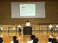 1年生代表の甲斐さんは、1学期の反省から2学期は落ち着いた学校生活を送るとともに、中学校での初めての体育大会、秋桜祭に全力で取り組みたいと抱負を述べました。