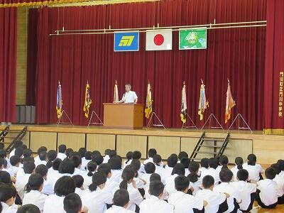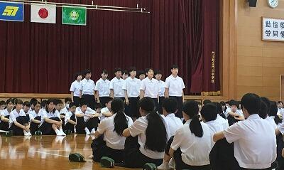 日向地区中学校総合体育大会の団体と個人の表彰式を行いました。
