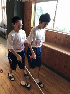 車いす・アイマスク歩行体験、手話体験、点字体験