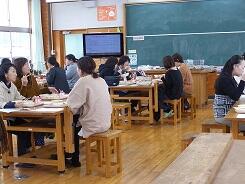 試食後、職員より学校給食の概要について講話を行い、家庭での食生活のあり方についての協議を行いました。