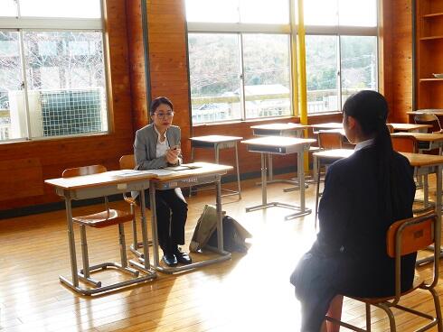 17日(金)の午後、3年生は高校入試面接試験の練習を実施しました。今回は、面接官として、学校運営協議会の方にもご協力いただきました。