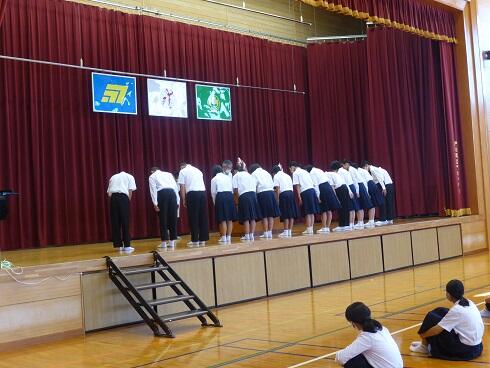 10月1日(木)、9月26日(土)・27日(日)に行われた中体連地区秋季大会の表彰式を実施しました。今回は主体である2年のみ、学年集会の形式で行いました。