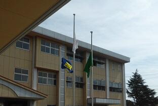 この災害の記憶を風化させないとともに、犠牲となった方々への弔意を表すため、11日は半旗とし、発生時間である午後2時46分に町内で流れたサイレンに合わせ、校内で全員で黙祷を捧げました。